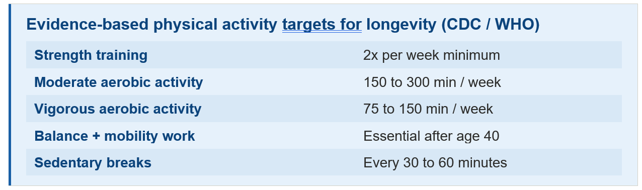 Evidence-based physical activity targets for longevity